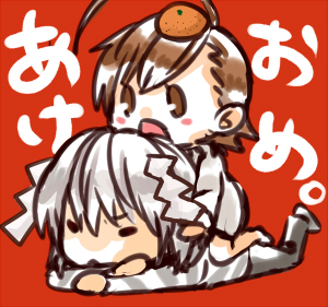 一方さん一人でもひとり鏡餅として(白いから)みかんのせればいいな~と思っていたのですが、せっかく2人重なってるから2人で鏡餅にしようと思い立ったのでこんな風に。